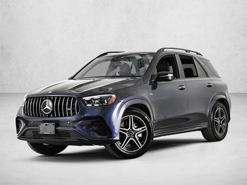 Certified 2026 X Loaner GLE53W4 All Wheel Drive Twilight Blue Metallic/AMG Black Nappa Leather with AMG Night Package, Warm & Comfort Package, Acoustic Comfort Package, Driver Assistance Package, Trailer Hitch, Heated Front Seats, Soft-Close Doors, Winter Package, Brushed Aluminum Trim & 20 AMG Twin 5-Spoke Wheels w/Black Accents